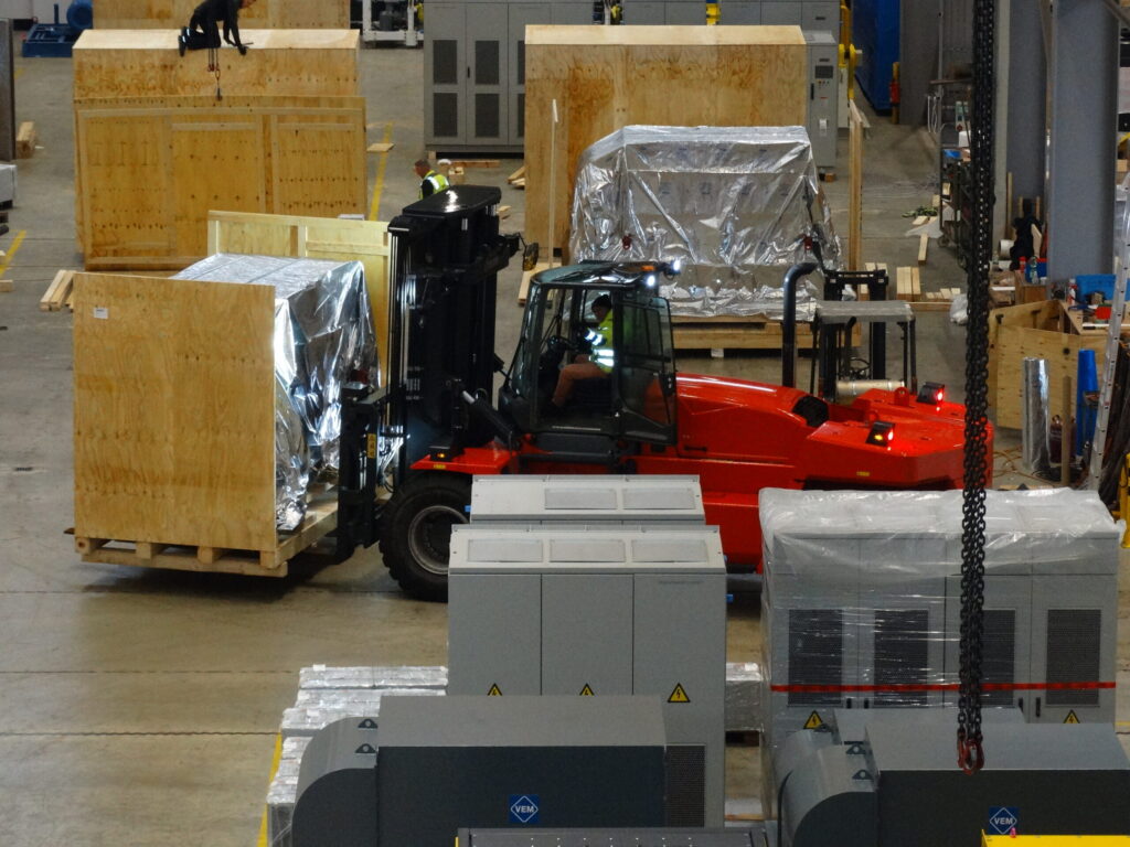 Auf einer Fläche von 263 m², die bei Bedarf erweiterbar ist, stehen moderne Lager- und Logistikflächen für Warenumschlag, Verpackung und Kommissionierung zur Verfügung. Die technische Ausstattung umfasst Flurförderfahrzeuge sowie Krananlagen mit 50 Tonnen Tragkraft, die selbst schwere Güter effizient und sicher bewegen können.
